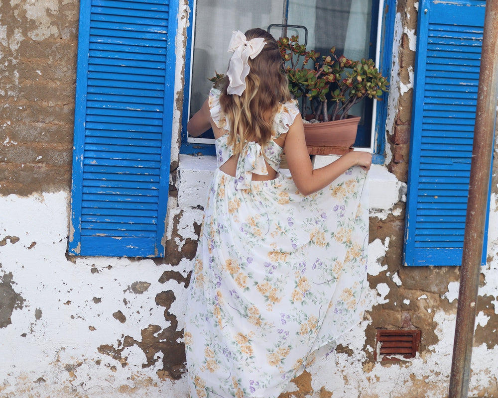Add an elegant curly champagne bow to complete the perfect look for a flower girl, birthday party, or any special occasion. Made from soft organza, this beautiful bow features flowing curled tails that create gentle movement and a delicate, airy finish in her hairstyle.