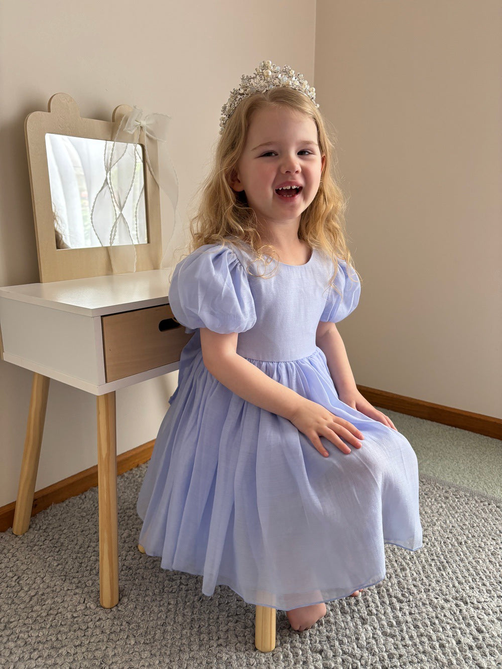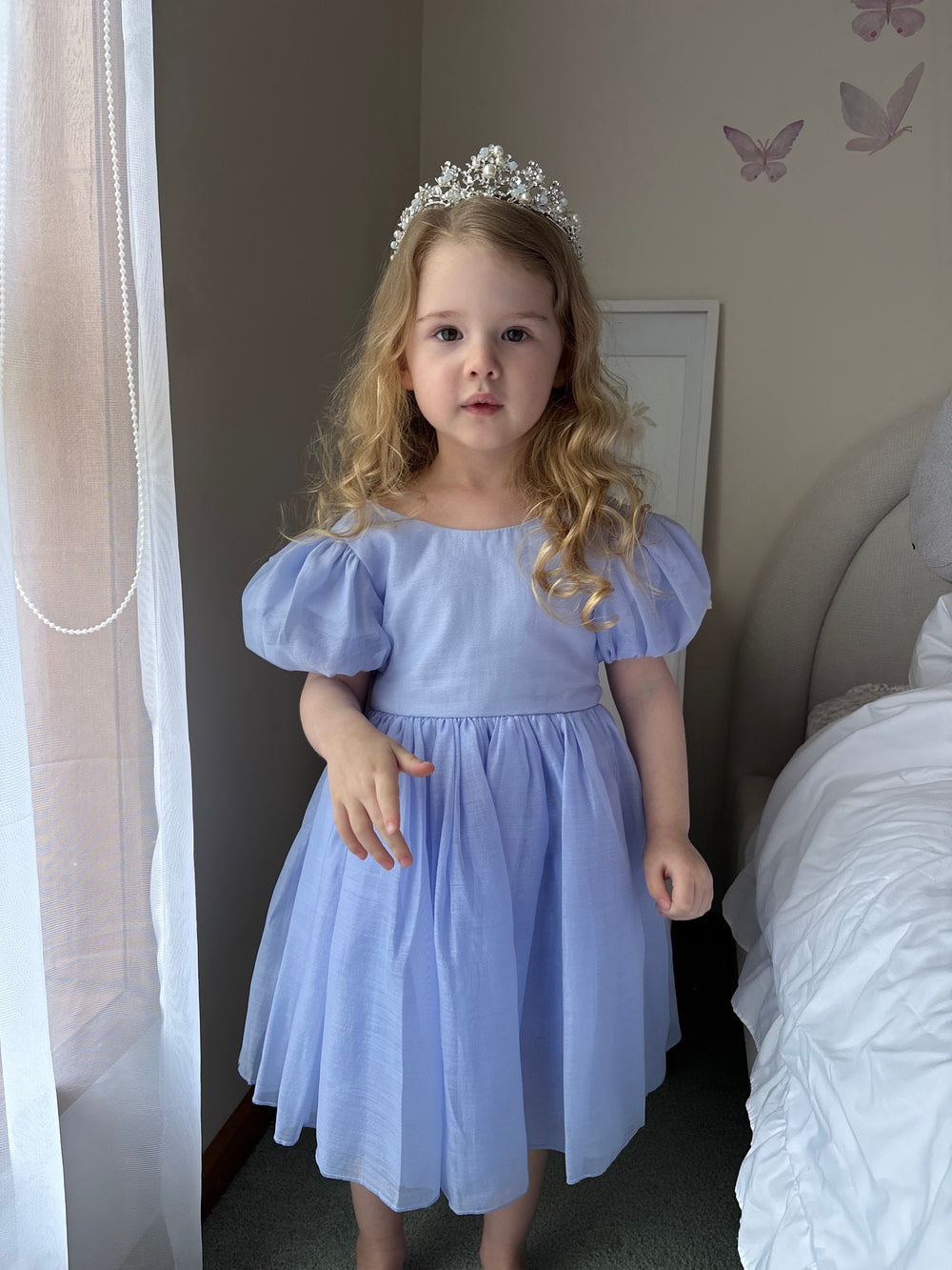 Crafted with attention to detail and a luxurious fabric that has a slight shimmer, this dress ensures both comfort and style for your girls. Let her shine with confidence in this unforgettable dress, and create cherished memories for years to come.