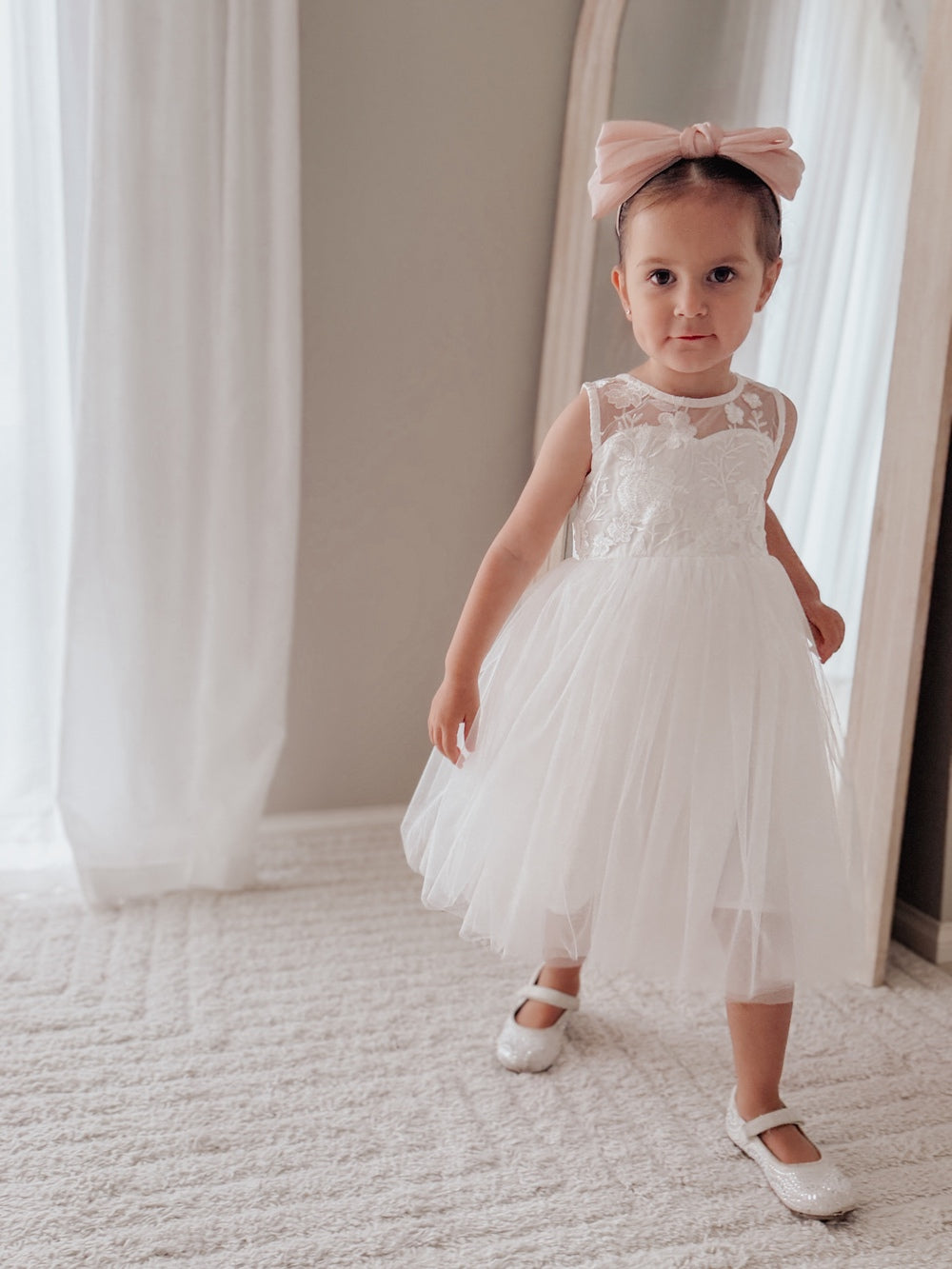 Some occasions call for something that feels traditional, comfortable, and genuinely beautiful. This girls white tea length dress is designed for exactly that. With delicate embroidery across the bodice and a classic tea-length skirt, it looks polished in photos while still feeling easy for her to wear all day.
