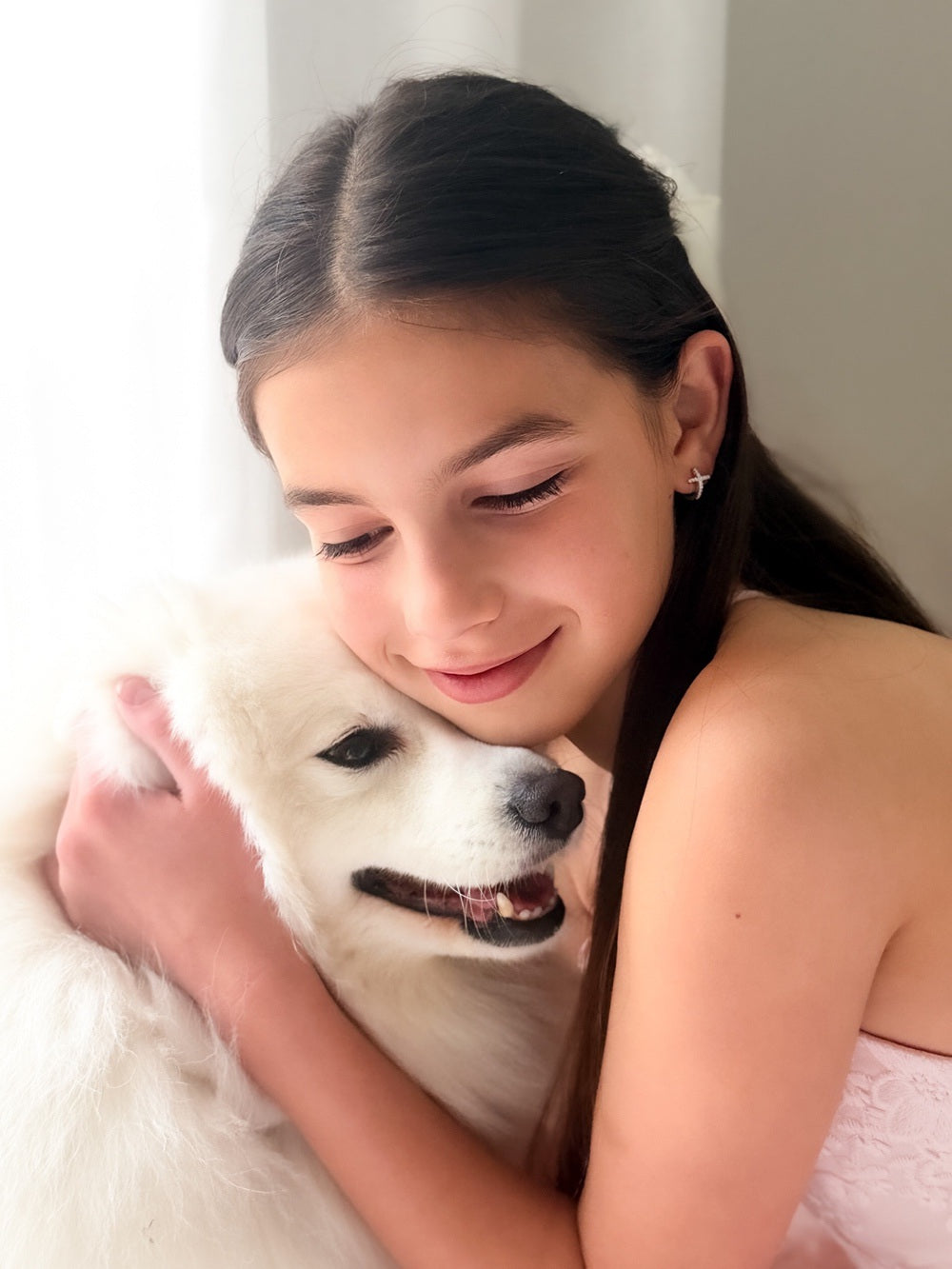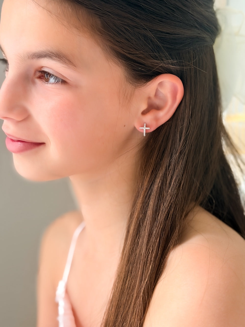 Designed especially for girls, these elegant sterling silver hoop earrings are lightweight, hypoallergenic, and perfect for sensitive ears. Whether she’s dressing up for her First Communion, confirmation, wedding, or family celebration, these earrings bring just the right balance of sophistication and sparkle.
