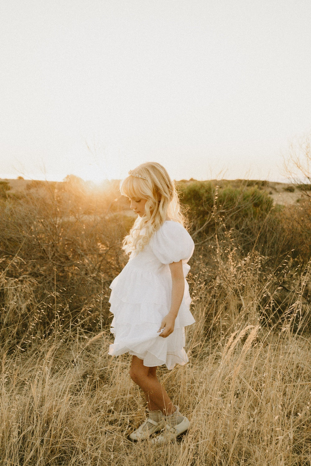 Crafted from a soft cotton-blend fabric with a delicate shimmer, the Josie dress provides a luxurious feel while ensuring all-day comfort. The layered skirt adds a graceful touch of volume, making it ideal for twirling moments and picture-perfect occasions.