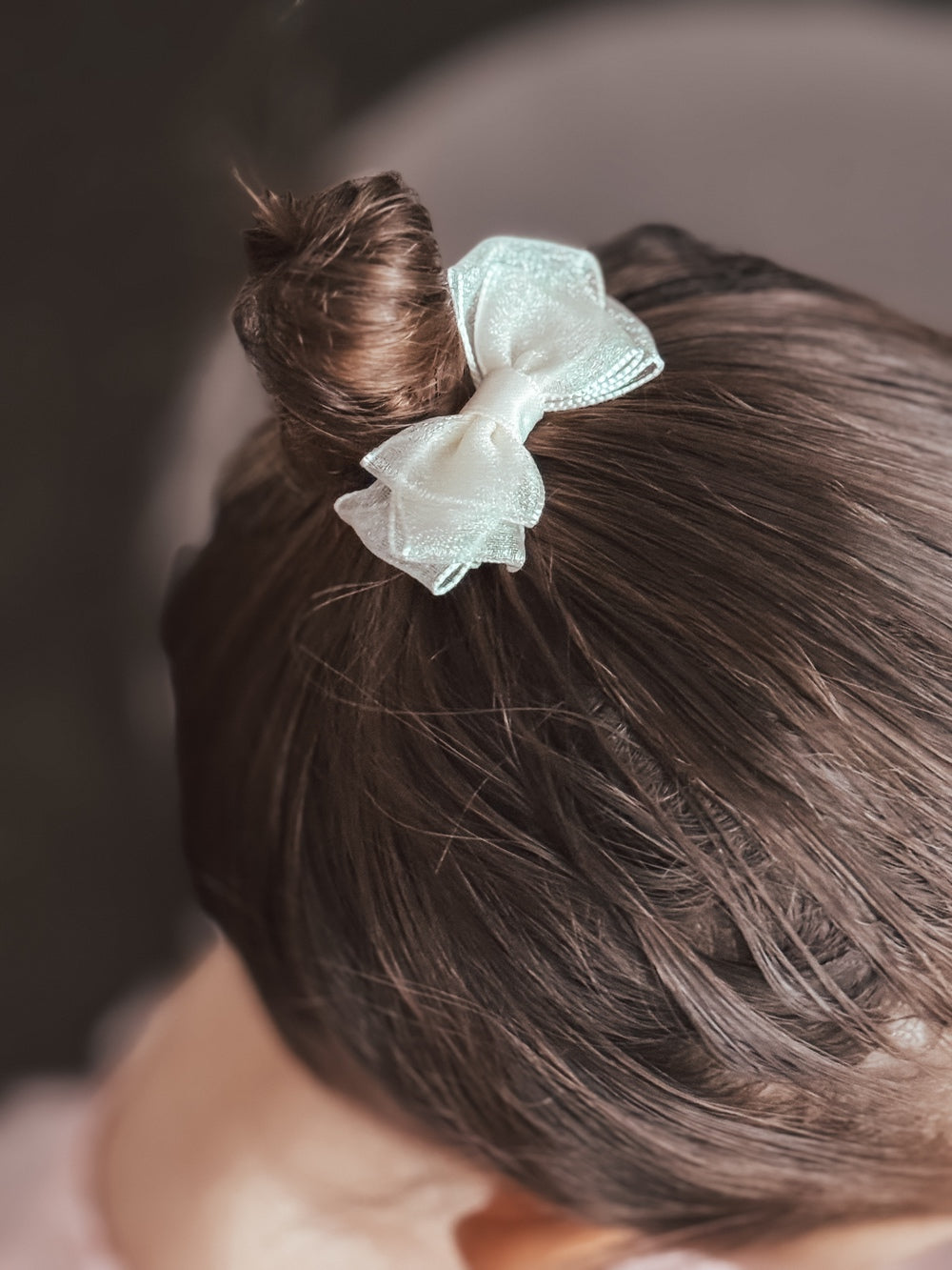 The Mini Ivory Bows are a dainty and timeless way to complete your little one’s look. Perfect for toddlers and young girls, these soft tulle bows add a gentle touch of elegance to pigtails, ponytails or half-up styles. With a subtle hint of sparkle woven through the fabric, they bring a sweet shimmer to everyday outfits, birthdays, parties and special occasions.