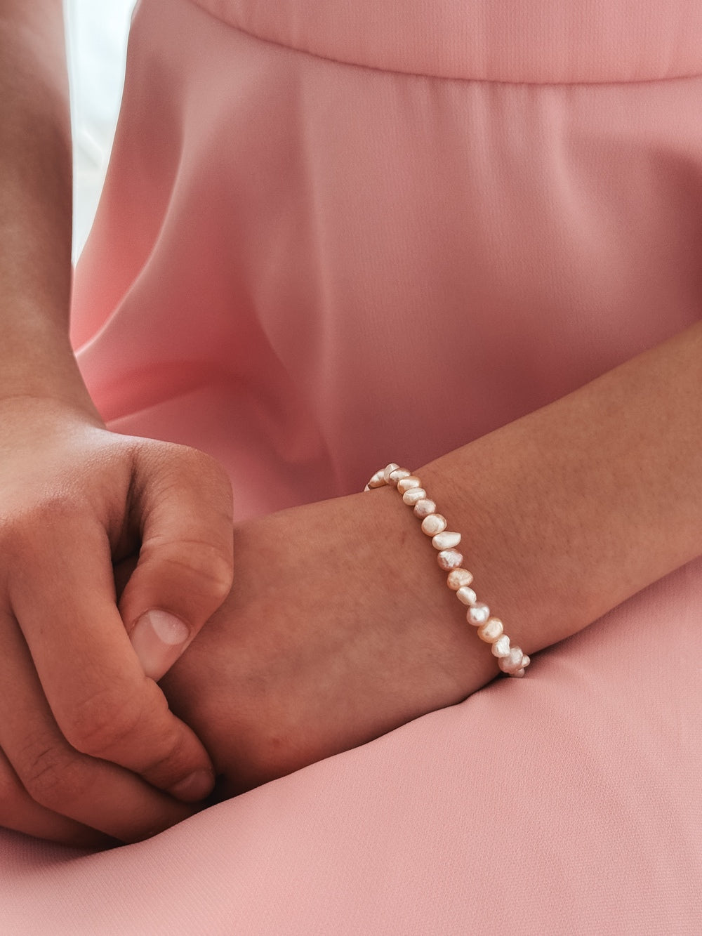 The Sugar Plum Girls Necklace & Bracelet Set offers a charming coordinated look she’ll love. Crafted in sterling silver, this duo features soft white, peach, and pink beads that bring together a gentle palette with elegant metallic accents. The set includes a matching necklace and bracelet, making it perfect for graduations, birthdays, or festive occasions.