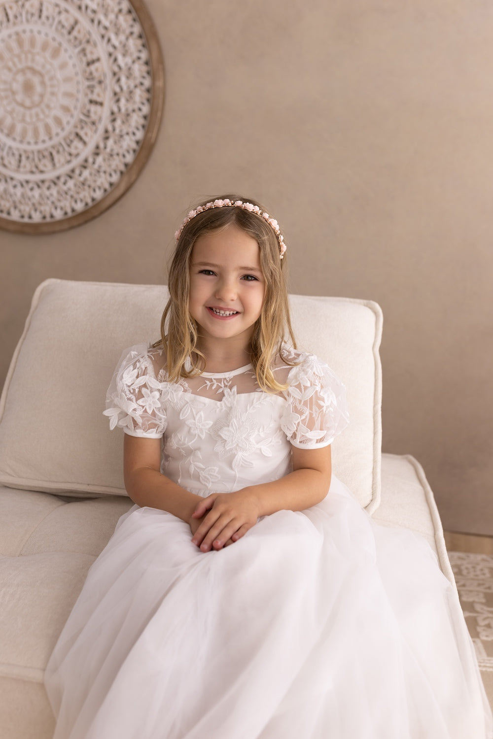 First Holy Communion, matching flower girl moments, junior bridesmaids, weddings, formal celebrations, and special photoshoots.